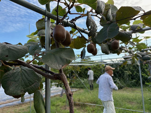 ケンちゃん農園ではキウイやブドウ、桃、アスパラ、キャベツ、なす、 キウイ 茄子