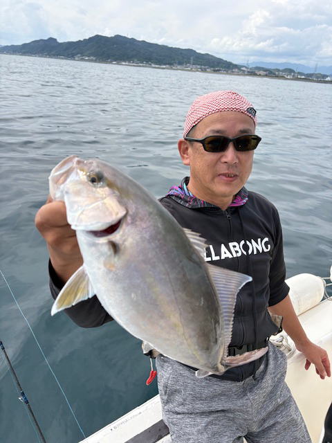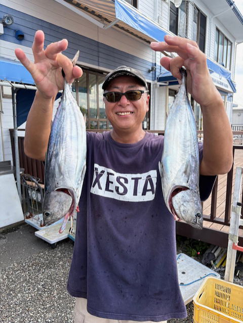 7:45出船、13:00沖上がり 曇りのち晴れ ベタナギ 水温25-26℃ ほっしー、しょうたろうくんと