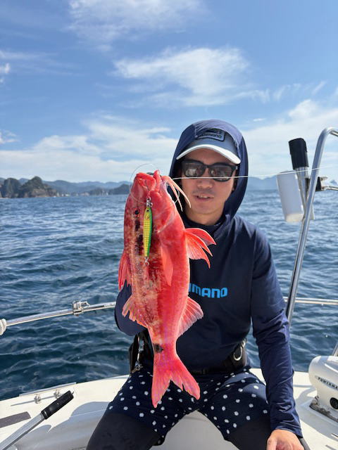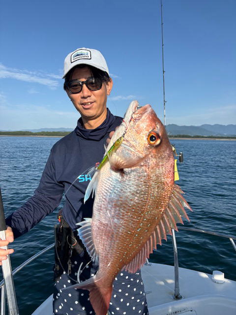 鯛場のジギングでヒデアキさん真鯛2枚