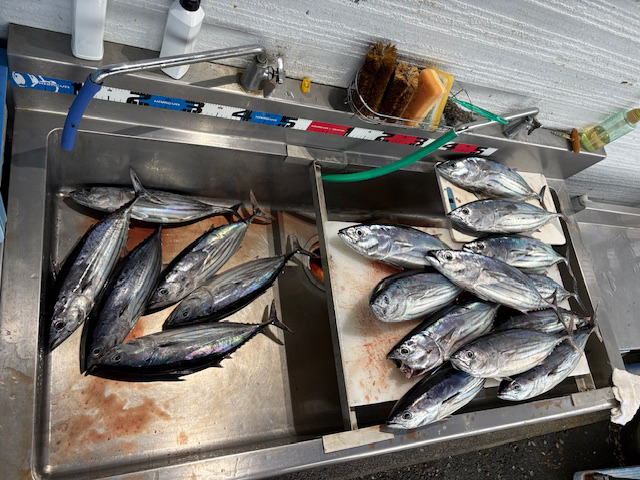 1~1.5kgの鰹 仙人が2本、ワタシとしょうたろうくんで16本、計18本