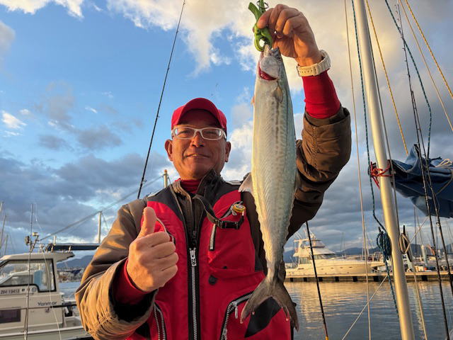 6時45分出船 16時沖上がり 曇り時々晴れ 凪 水温港内17℃、沖は19℃ 仙人、ミツバシさんと