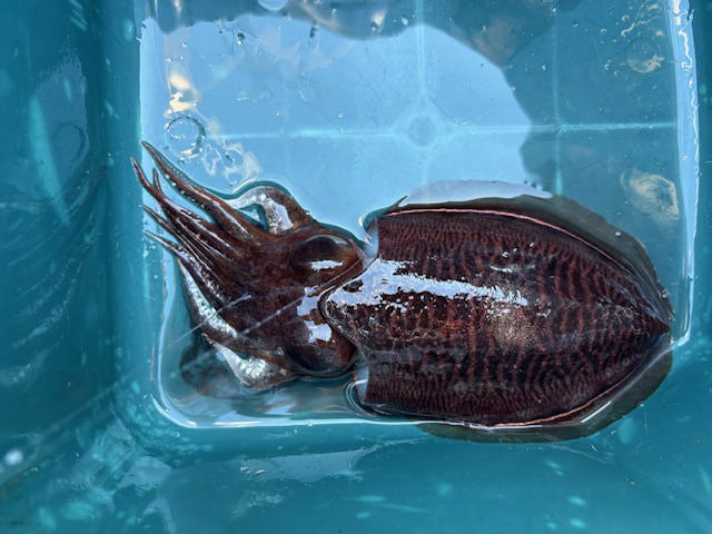 令和8年1月4日(日) タイラバ/ジギング/墨烏賊テンヤ 9:30-14:00 晴れ ヒデキさんと 水温14.5℃(港内)~17℃(港外) 良い天気 サゴシは水温急低下でベイトもどこかへ行っちゃったみたい、、 安倍川沖でジギング、タイラバやるも当たり皆無 今年の初軟体動物 ヒデキさんはティップラン でサバフグ×1のみ。キビシー海でした。 マリーナでさくらちゃん3歳♀