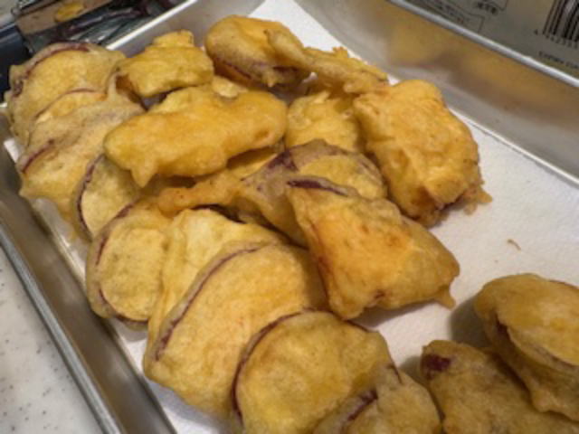 オキザワラとウルメイワシの天ぷら さつま芋の天婦羅 ほんのり甘くて旨いわ。残りは1か月寝かせると甘味が出てくるんだと。 連日の北東風で湾内に青い潮が沖から入ってきた!! 良さげな予感。