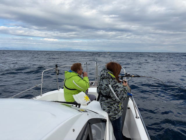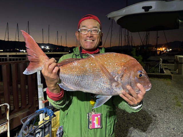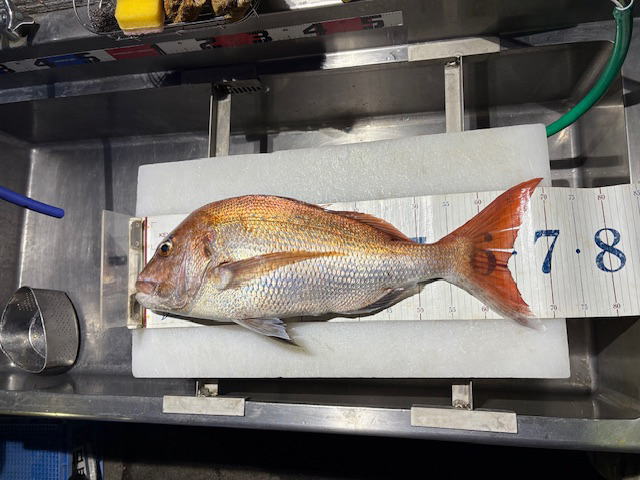 7時出船 16時沖上がり 晴れ 北東風あり 水温17℃ SANEI号船長夫妻、仙人と