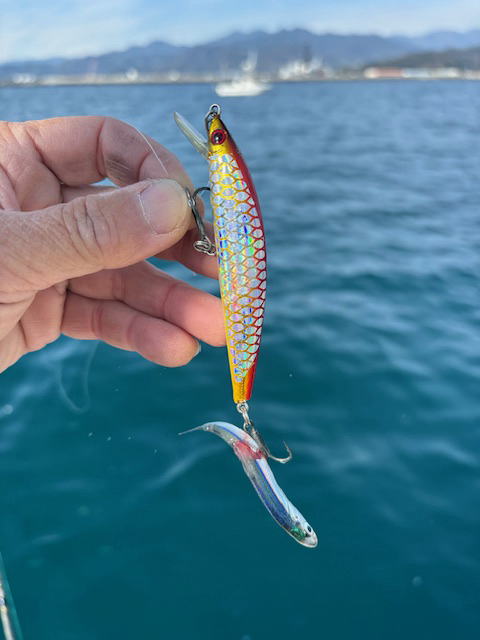 令和7年12月31日(水/大晦日) サゴシキャスティング/テンヤイカ 7時出船 11時半沖上がり 晴れ 凪、水温17℃ 仙人、ミツバシさんと サゴシは3人で1本 仙人とワタシはバラシのみ 他小鯖 ワタシの今年のラストフィッシュはコレでした 皆様、良いお年を!