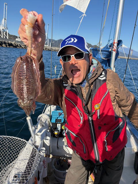 令和8年1月4日(日) タイラバ/ジギング/墨烏賊テンヤ 9:30-14:00 晴れ ヒデキさんと 水温14.5℃(港内)~17℃(港外) 良い天気 サゴシは水温急低下でベイトもどこかへ行っちゃったみたい、、 安倍川沖でジギング、タイラバやるも当たり皆無 今年の初軟体動物 ヒデキさんはティップラン でサバフグ×1のみ。キビシー海でした。 マリーナでさくらちゃん3歳♀