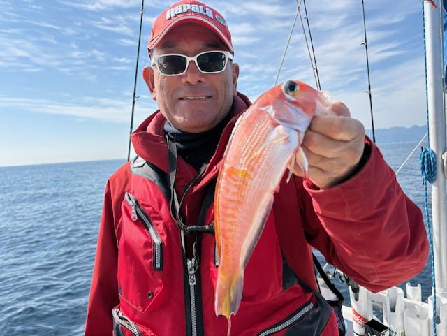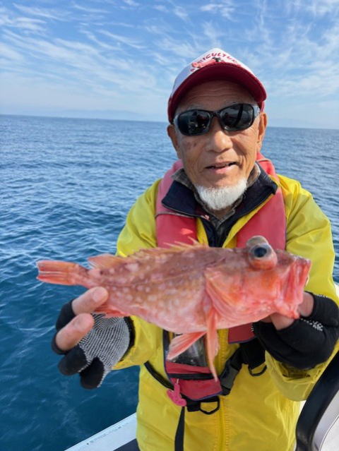 令和8年2月14日(土) 7:30-16:00 仙人、しょうたろう君と 水温14℃台 晴れ ちきゅうが小笠原での試掘から帰ってきた 普通のアマダイ水深100m以上で カサゴ カサゴにカサゴ