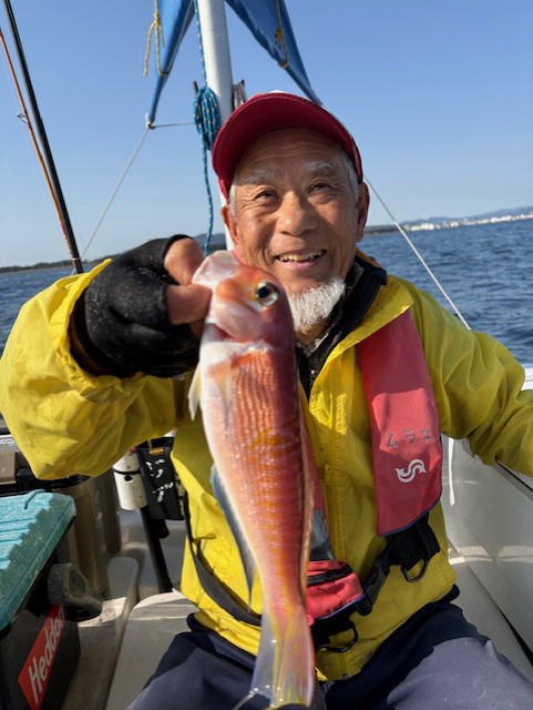 令和8年3月1日(日) 8:30-12:30 仙人と 水温15℃台 晴れ 近場 今日もアマダイ餌釣り 昨日と違ってよく釣れました べた凪ぽかぽか陽気でパーカー1枚ですわ 750gの良型